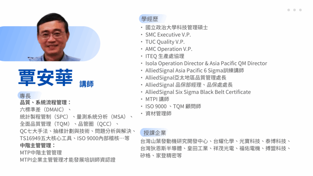 ▸ 對製程品質有興趣的中高齡轉職者、技術人員|期望提升專業度、進入更穩定的工作領域