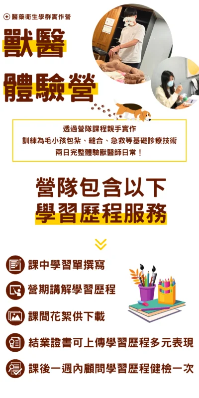 ▸ 【模擬體驗】:真實模擬動物醫院環境,從看診到治療,全方位體驗獸醫師的工作流程。