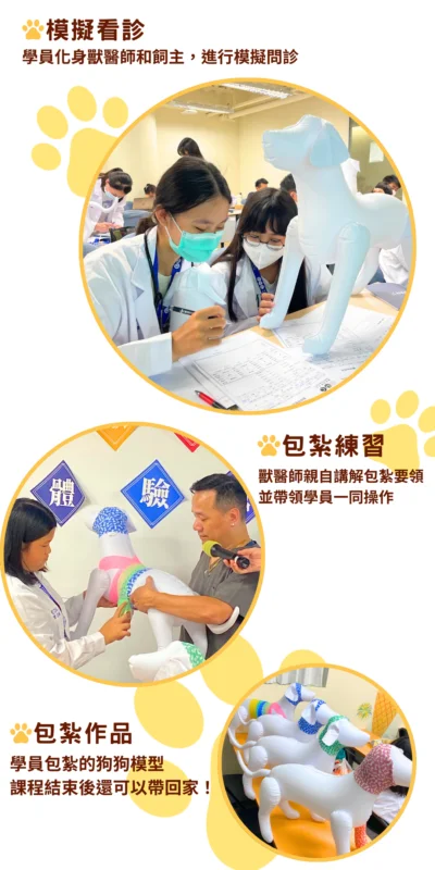 ▸ 【實戰訓練】:從包紮、縫合到急救處理,您將在專業獸醫師的指導下,通過實際操作來學習這些技能。