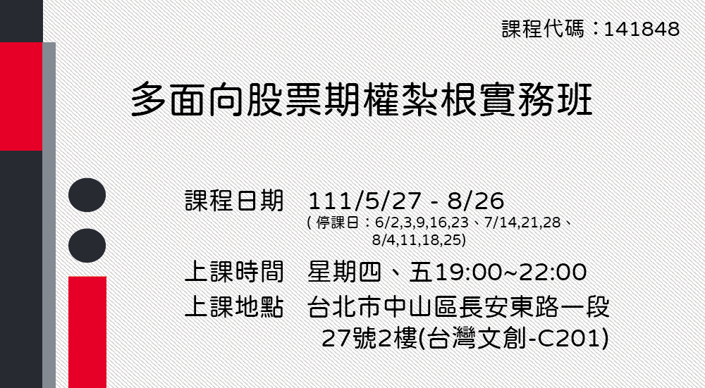 台北 141848 多面向股票期權紮根實務班第01期