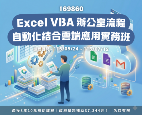 169860 Excel VBA 辦公室流程自動化結合雲端應用實務班第01期 -台北
