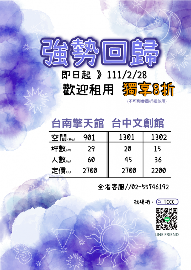 歡迎舊雨新知即刻來電/來信、或加入官方LINE@洽詢檔期唷!